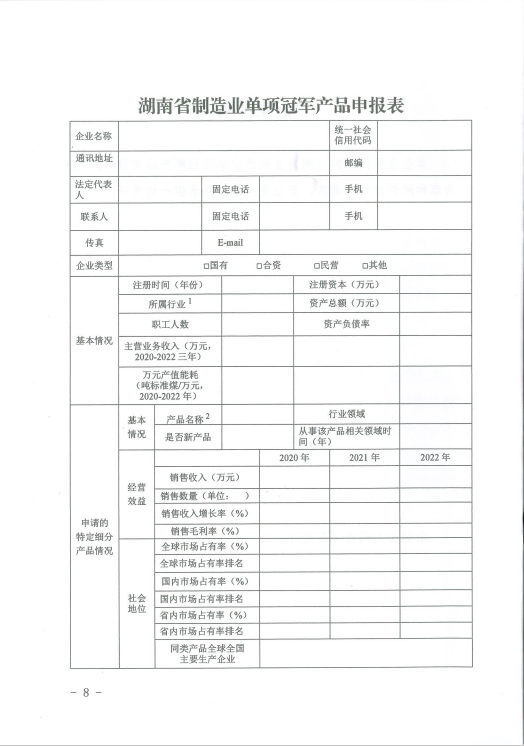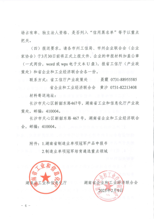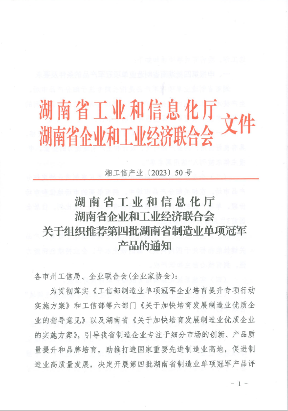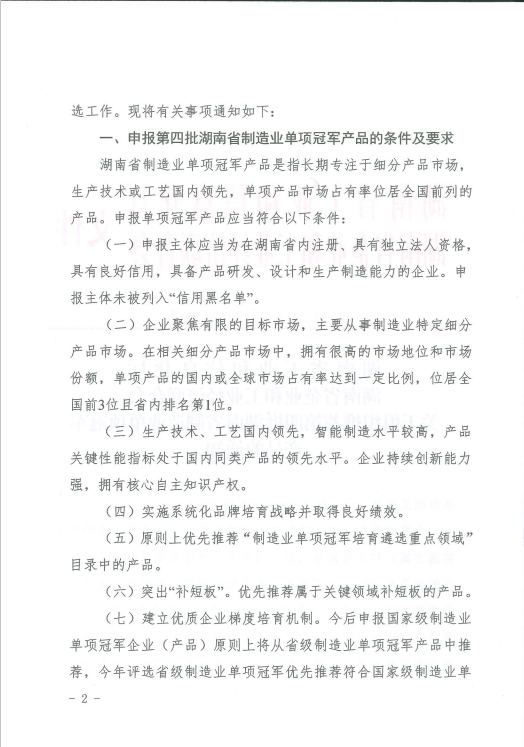 關(guān)于組織推薦第四批湖南省制造業(yè)單項冠軍產(chǎn)品的通知